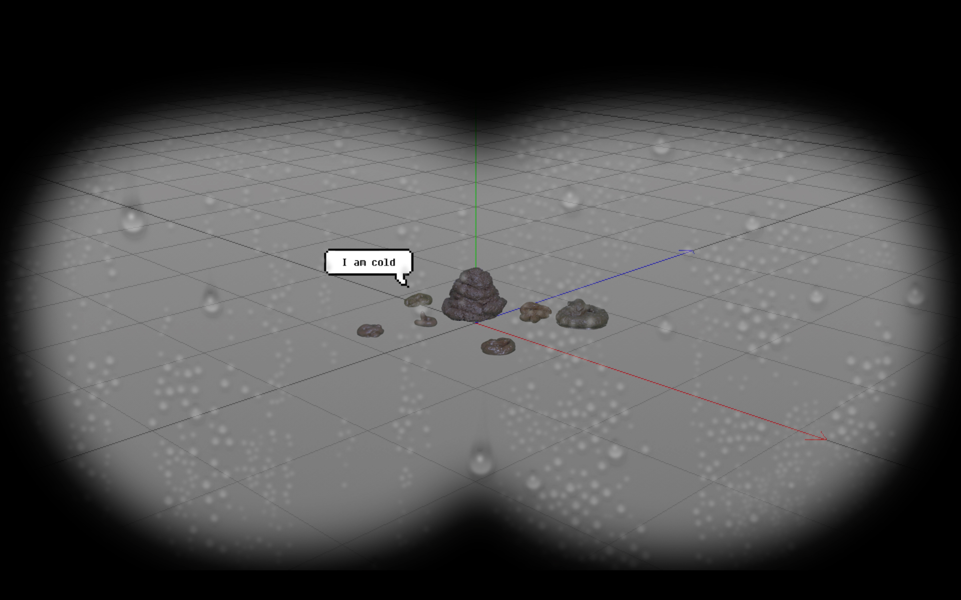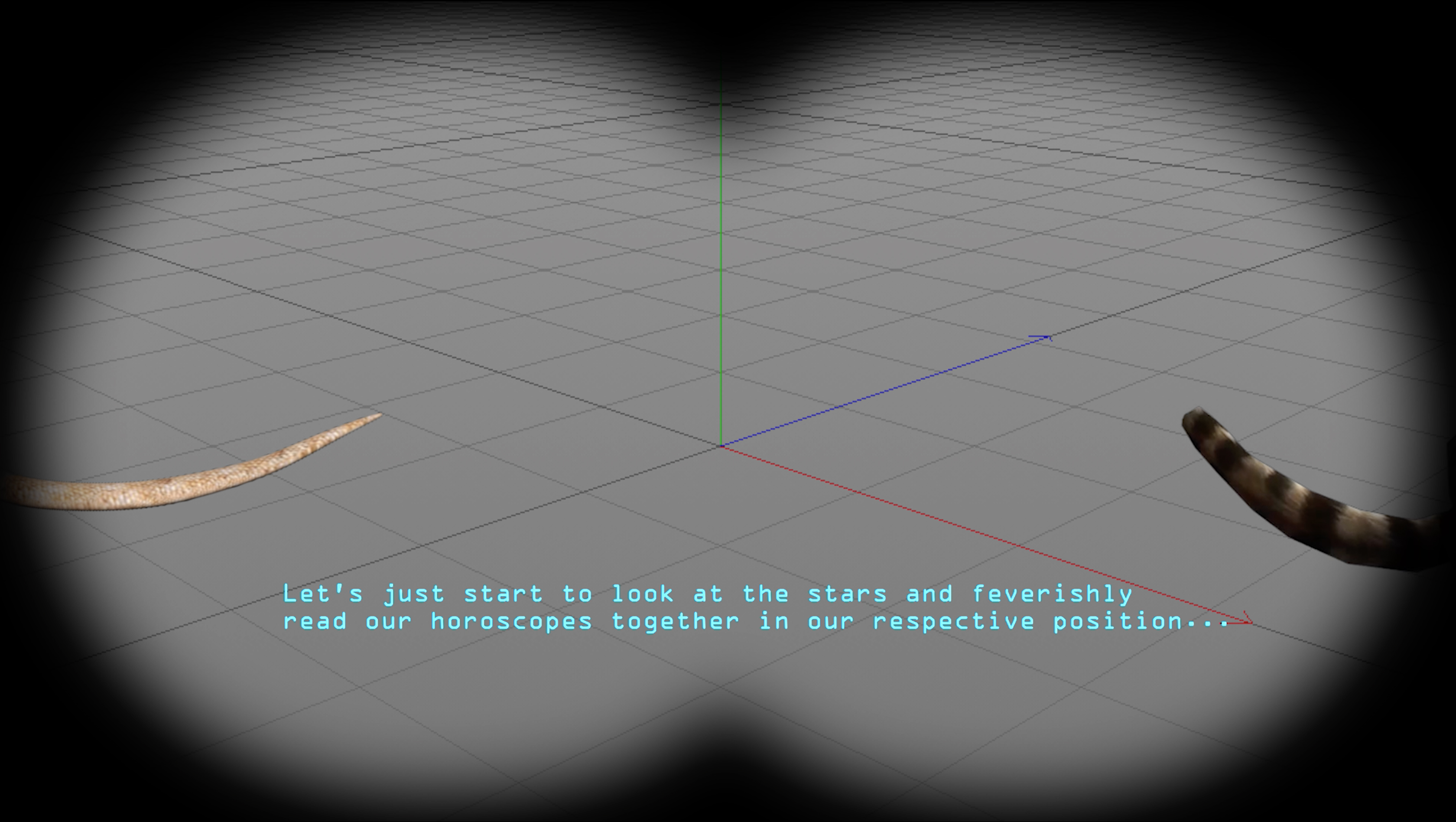 The Fly Ver. is the second part of this project. The small fly that appeared and disappeared alongside the protagonist in the Green Human Version becomes the storyteller in this segment. The worldview of merely being 'observers' of each other is a key theme contained within the artist's work Tethering (2022). In the piece, the voice of the fly does not reach the green human and emerges as a one-sided monologue. Within a structure where interaction is impossible, it narrates how those beyond the boundaries fade away.
